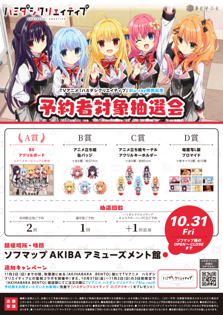 TVアニメ「ハミダシクリエイティブ」のBlu-ray発売を記念して、予約者対象抽選会を開催いたします!
